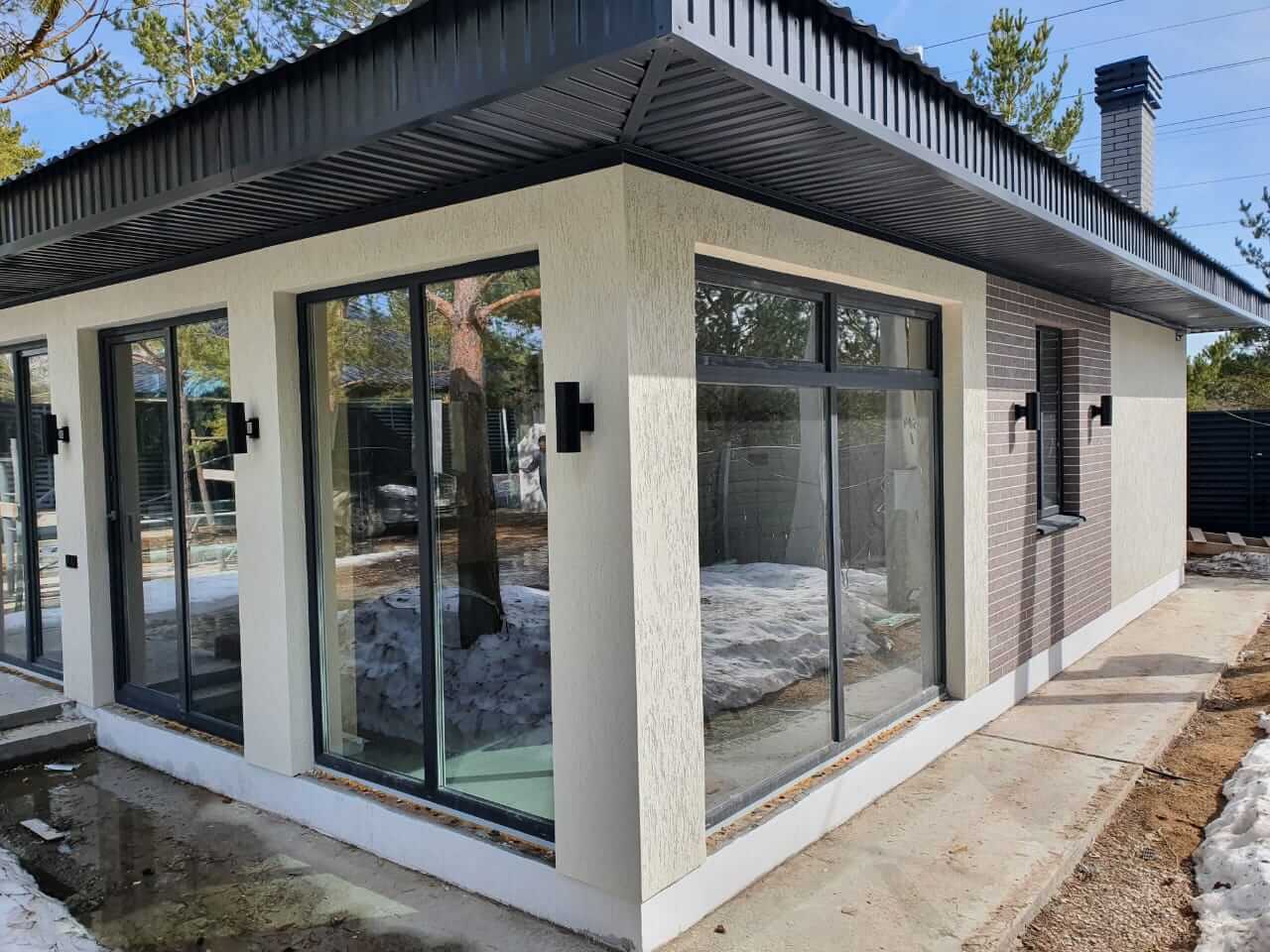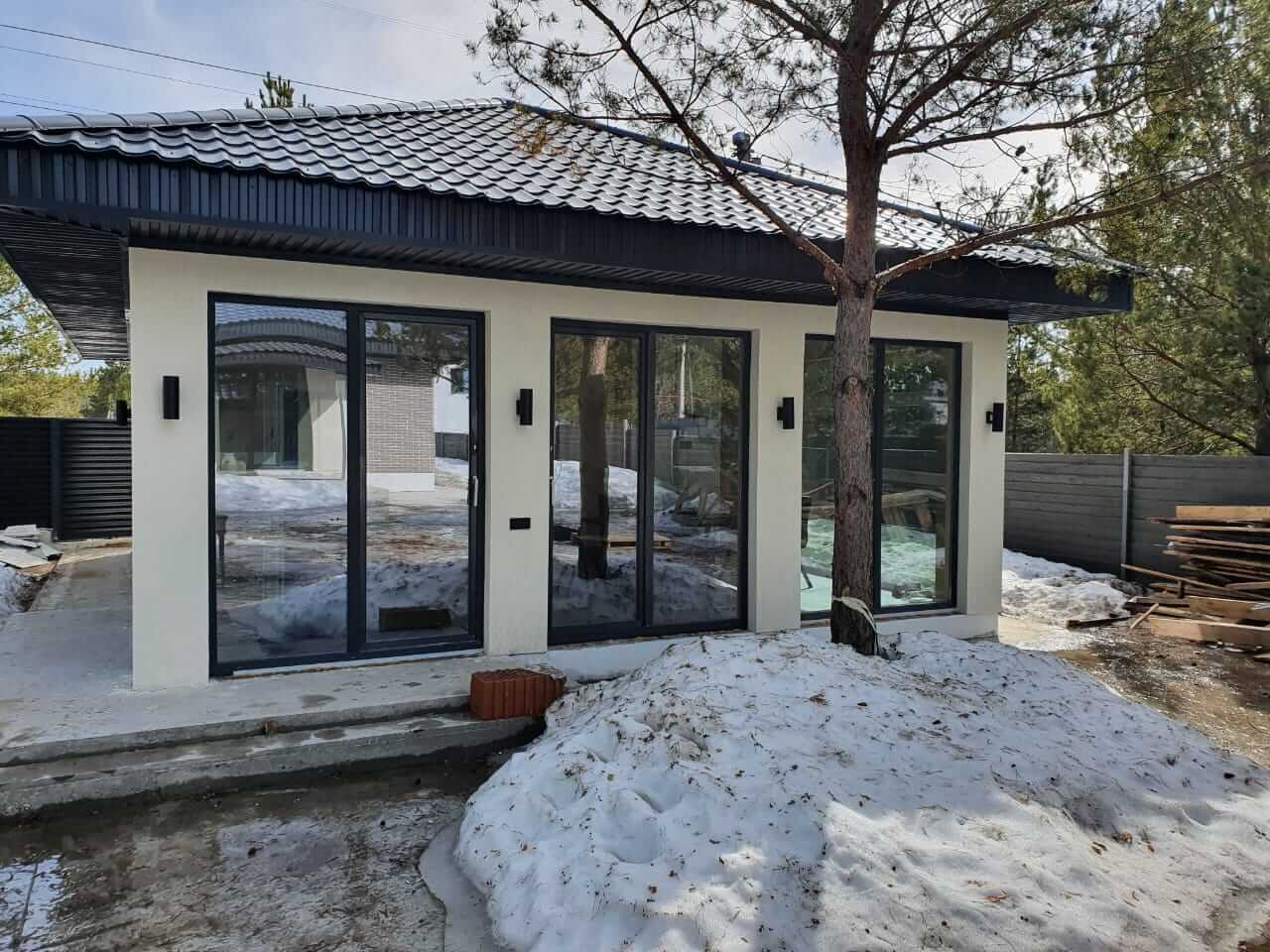Портальные системы Roto Patio и ламинированный профиль Grain цвета антрацит стали частью современного проекта коттеджа с баней одного очень хорошего человека. Так и хочется зайти в гости и посмотреть, что же там внутри.