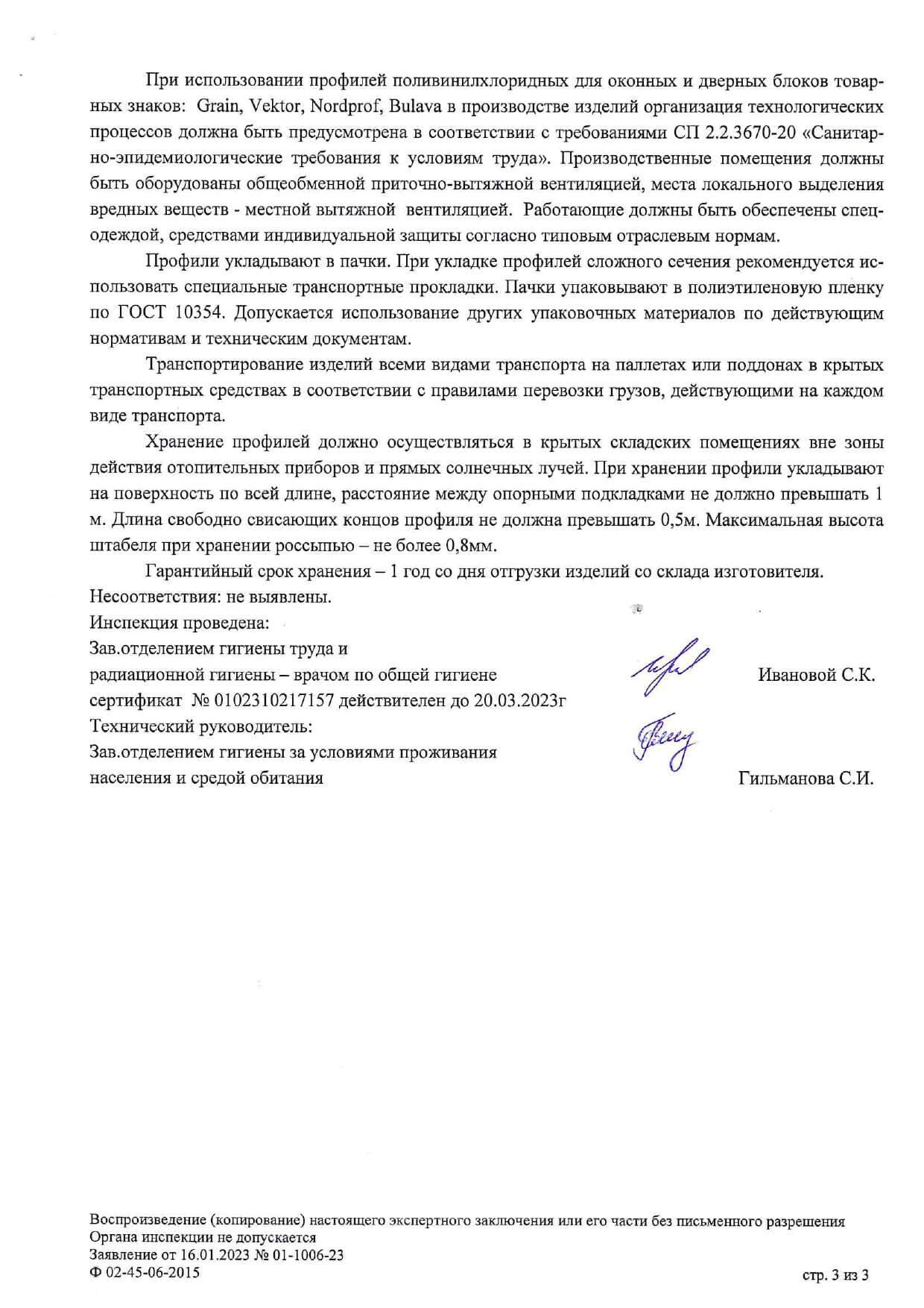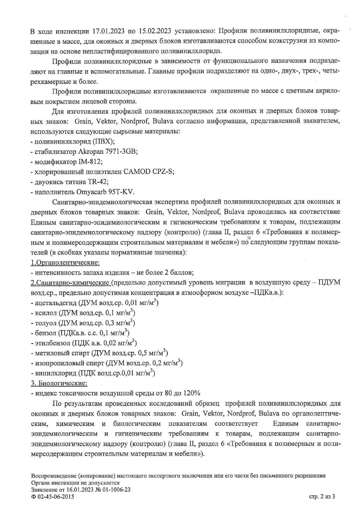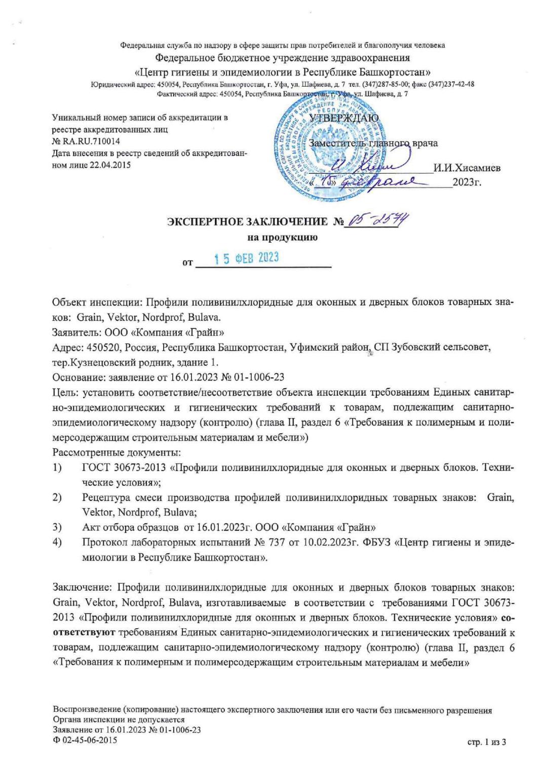 Экспертное заключение по гигиене Grain, Vektor, Nordprof, Bulava