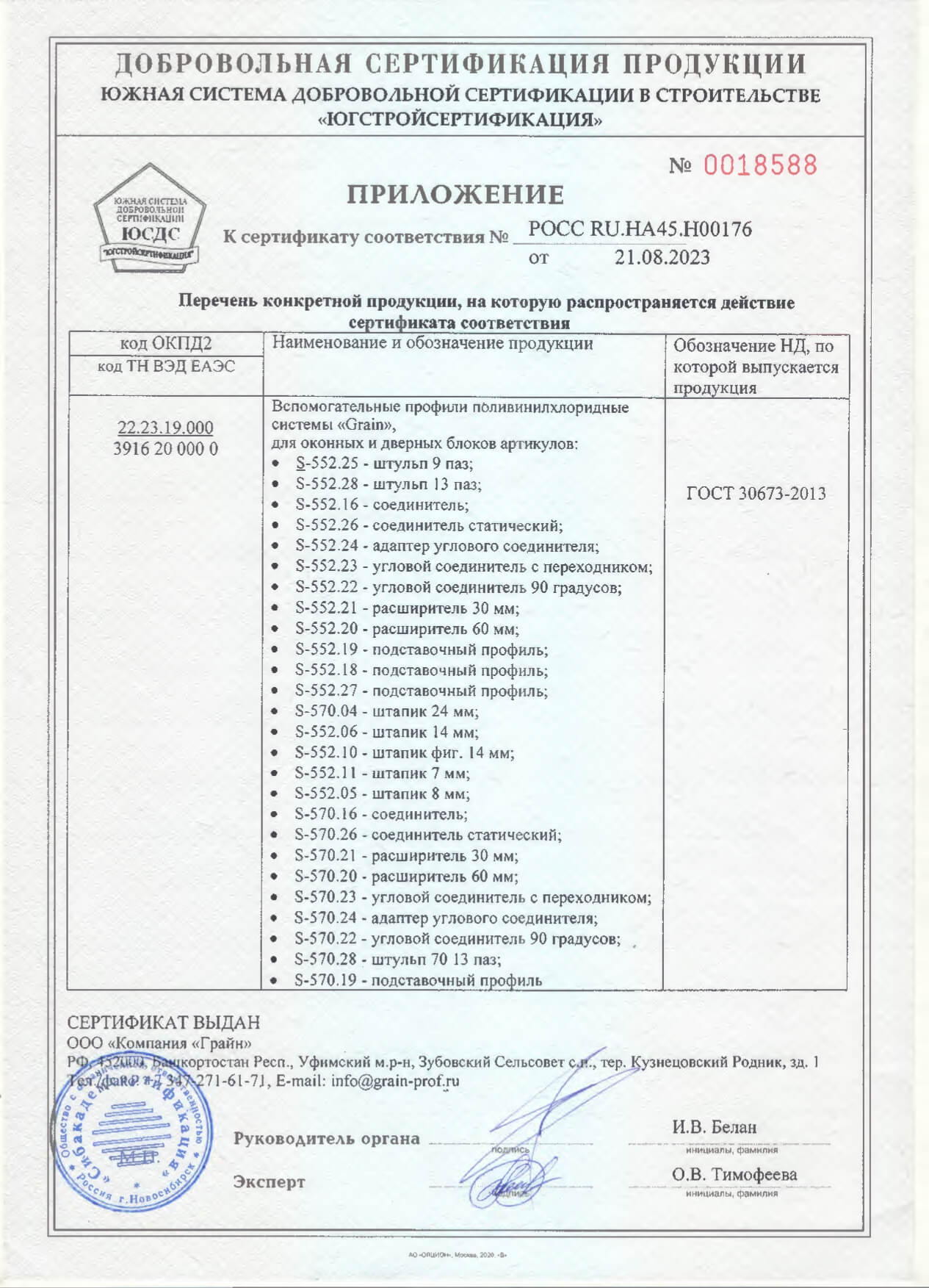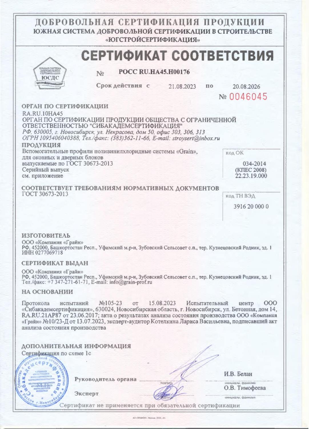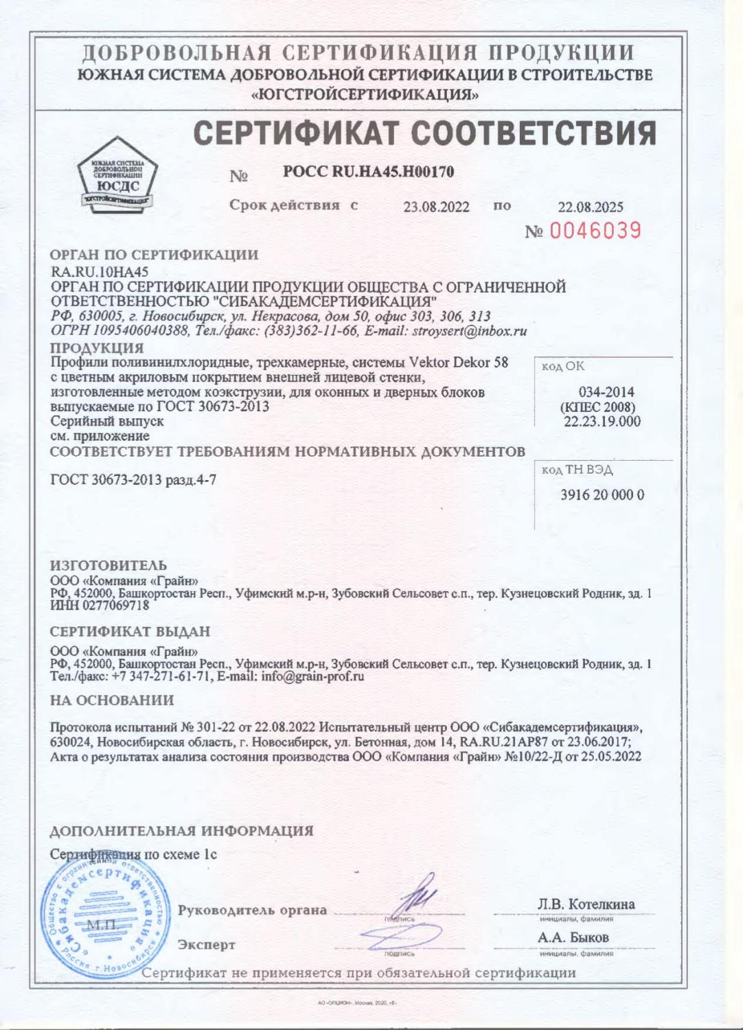 Экспертное заключение по гигиене Grain, Vektor, Nordprof, Bulava